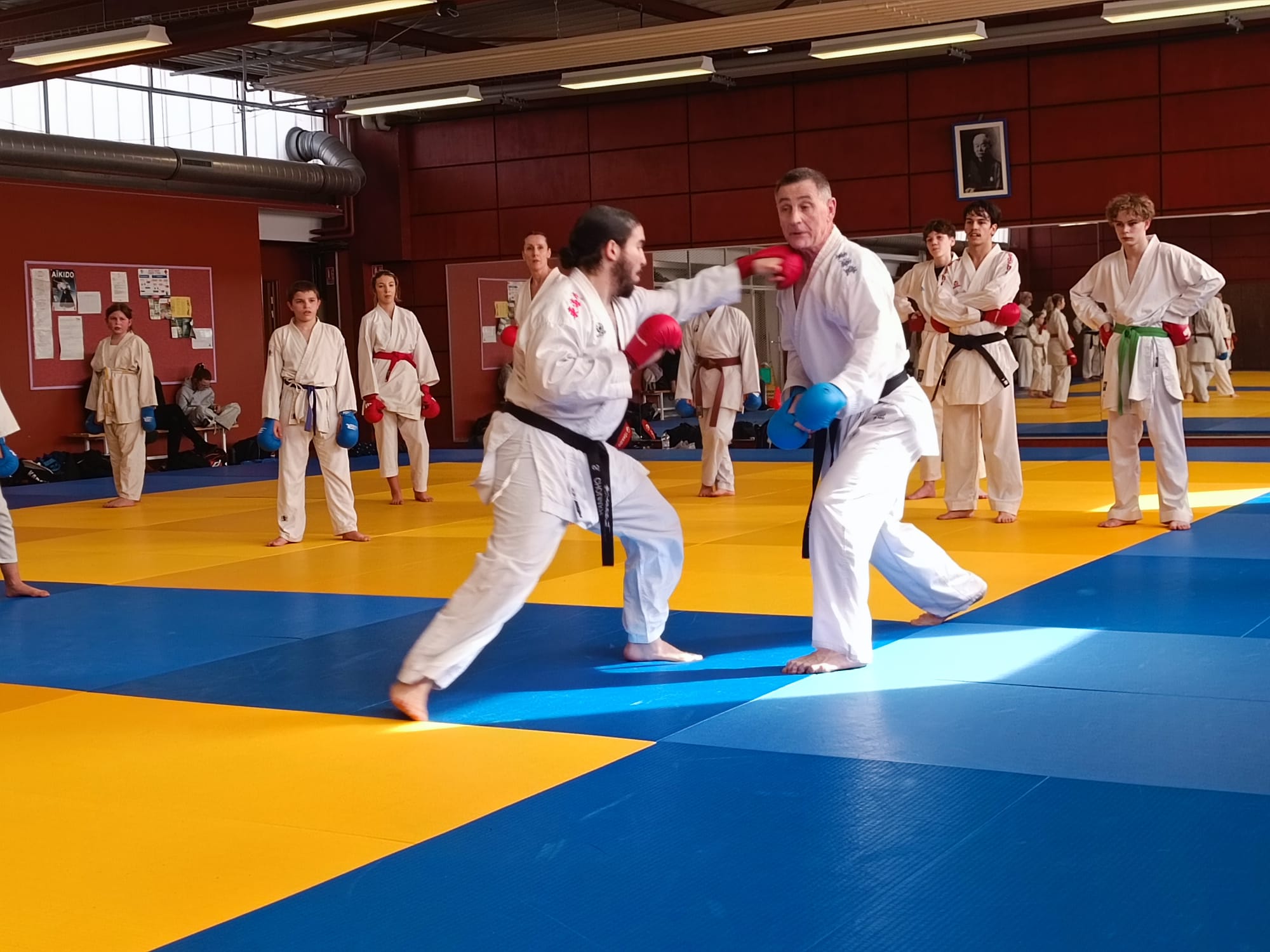Ce samedi 7 mars 2026, le dojo du Petit Versailles à La Flèche a vibré au rythme du Kumite. De 14h30 à 16h30, le KSF72 organisait un stage de perfectionnement au combat, animé par Pascal Reix, épaulé par Soufiane Chouiakh.